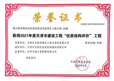 2021年度天津市建設工程“優質結構評價”工程 微山路定向安置房項目